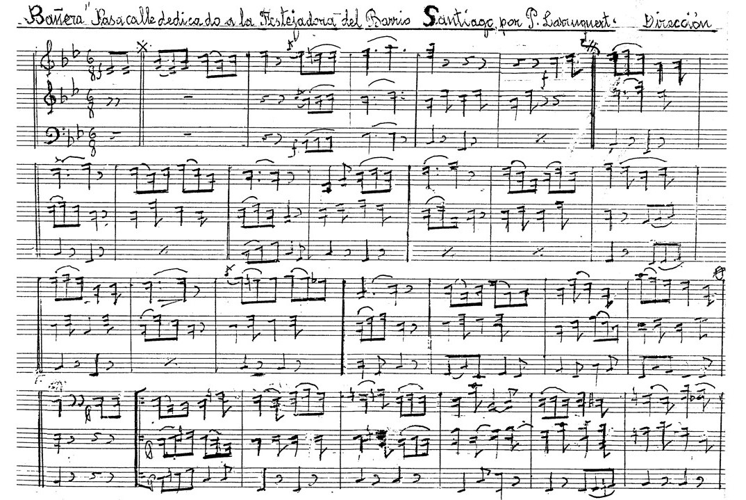 La prensa anuncia: “recorrerá diversos puntos de la localidad una vistosa tamborrada en que tomará parte un grupo de jóvenes del barrio, acompañados de una notable banda de música con el pasacalle dedicado a la Festejadora de Santiago por Pedro Larruquert” (El Bidasoa, 24-VII-1934).